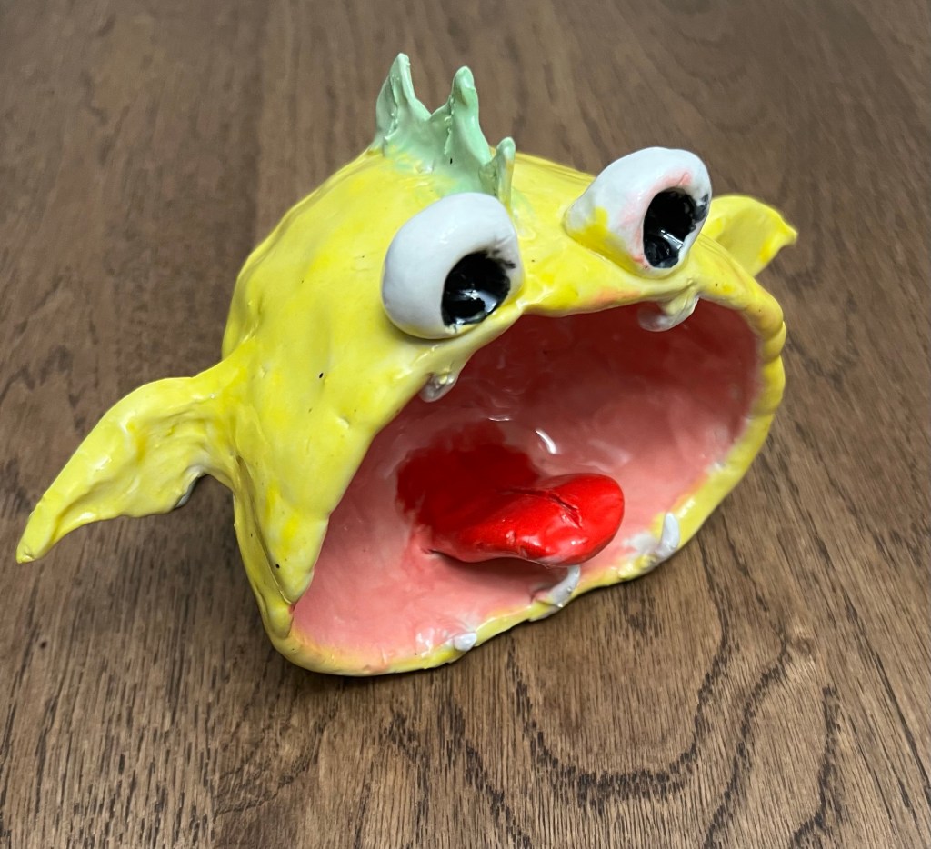 ArtCraft Sea Monster Date: February 15, 2023Author: Ay 0 Comments My second pottery art Share this: Click to share on X (Opens in new window) X Click to share on Facebook (Opens in new window) Facebook Like Loading... Related