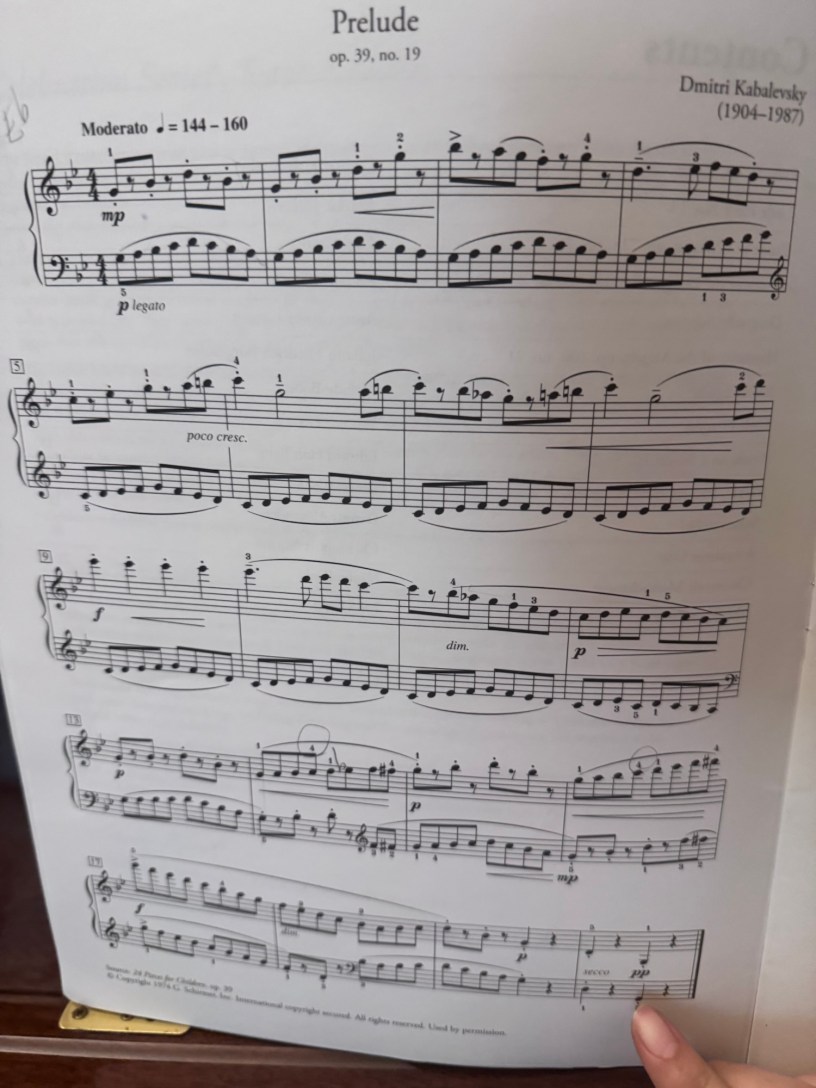 Music Prelude op 39 no 19 Date: November 10, 2025Author: Ay Dimitry Kabalevsky Share this: Click to share on X (Opens in new window) X Click to share on Facebook (Opens in new window) Facebook Like Loading... Related